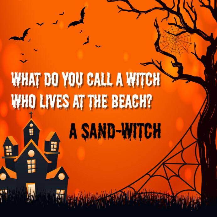 Вопрос на картинке: как называется ведьма, живущая на пляже? Ответ: сенд-вич. Здесь игра слов: песок-ведьма