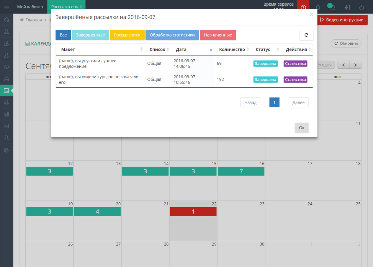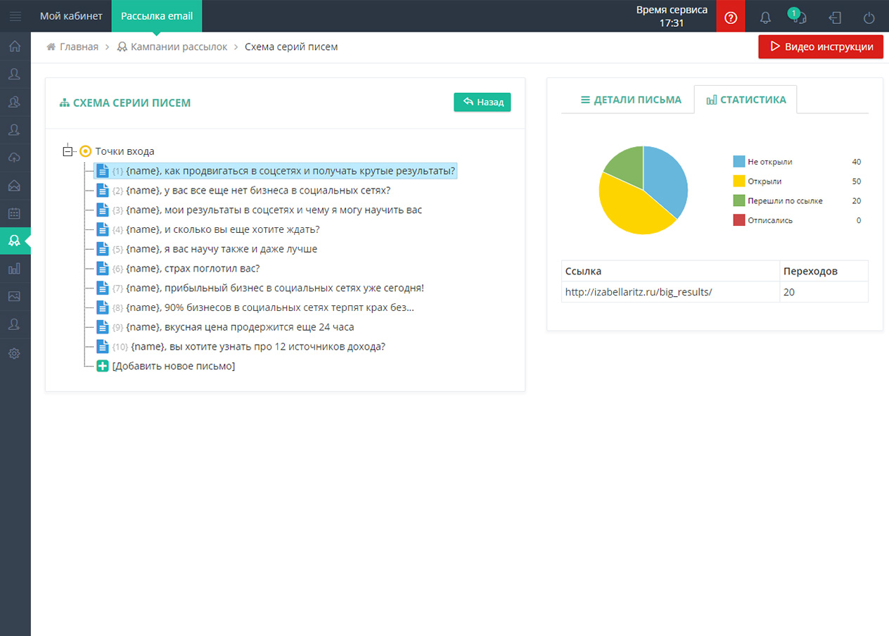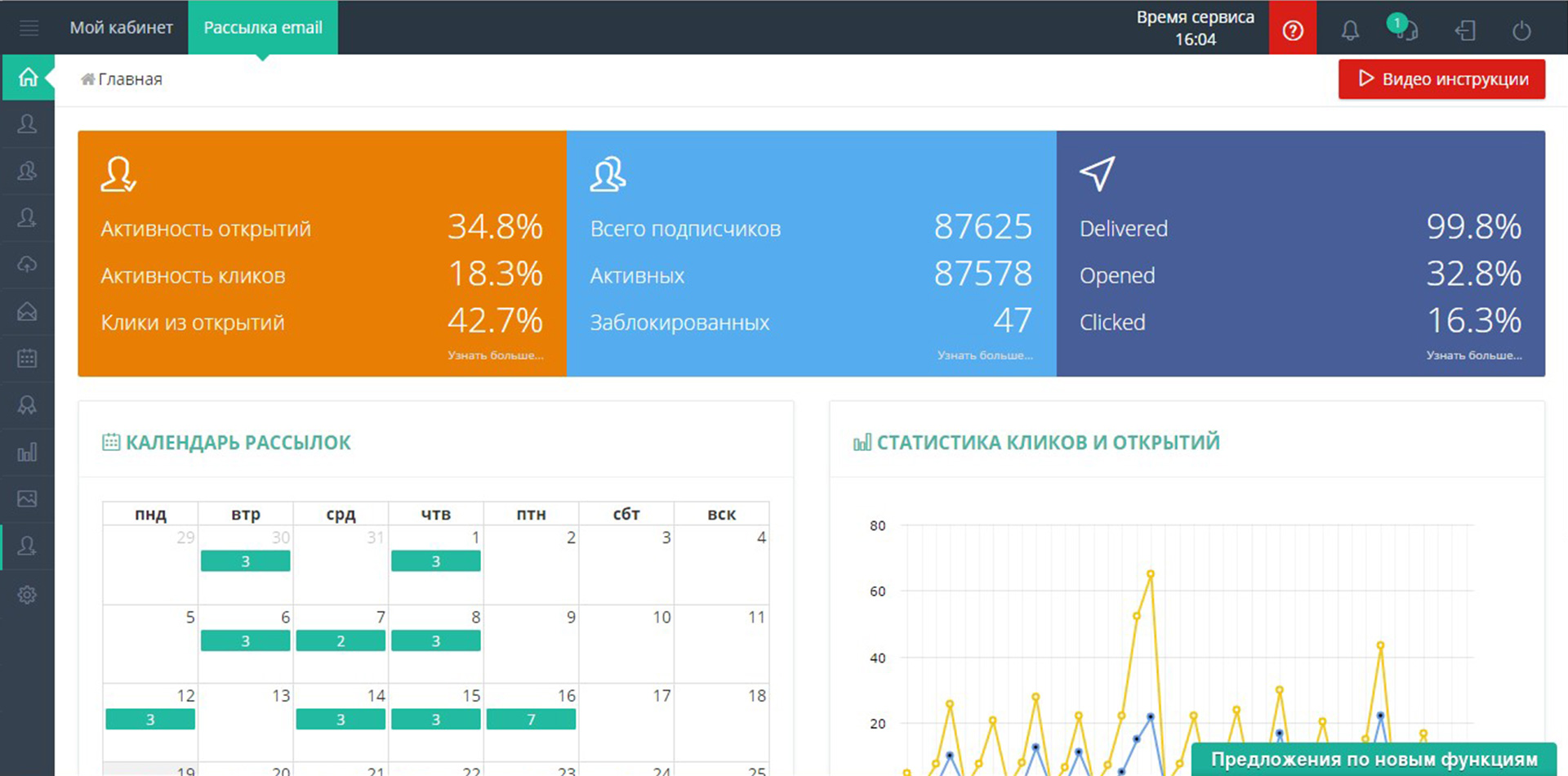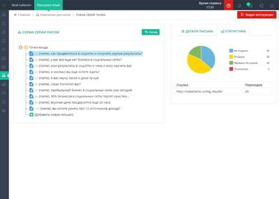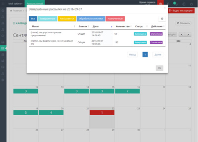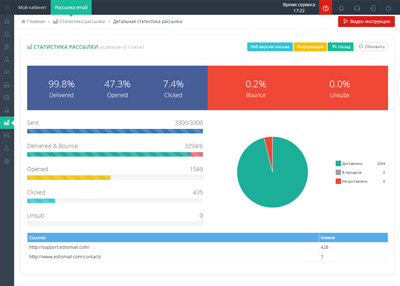 Для глобальной аналитики рассылок, предоставляем расширенную статистику, которая подробно покажет всю необходимую информацию: количество открытий писем, клики по ссылкам в письмам, время открытия писем и много других интересных данных.